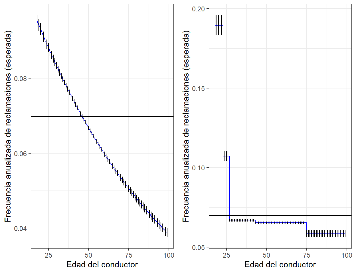 (#fig:reg_completa)Costo promedio de reclamación según la edad del conductor.